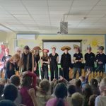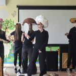 Balandžio 24 d. 8b klasės mokiniai lankėsi lopšelyje-darželyje „Rūta“, kur pristatė savo vaidinimą „Grybų karas“ pagal Justino Marcinkevičiaus eiles. Šis pasirodymas – dar 7 klasėje pradėtas projektinis darbas, kurį mokiniai tęsia iki šiol ir sėkmingai rodo įvairiose mokyklose bei darželiuose. Praėjusiais metais spektaklis buvo pristatytas ir Palangoje. Mokinius ruošė Ieva Čereškaitė, kostiumų dizaino konsultantė – Zyta Kobiak.