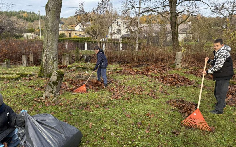 Przed Dniem Wszystkich Świętych uczniowie klas 6a, 7a i 7b, pod czujnym okiem maturzystów z klasy IVa i wychowawczyń Renaty