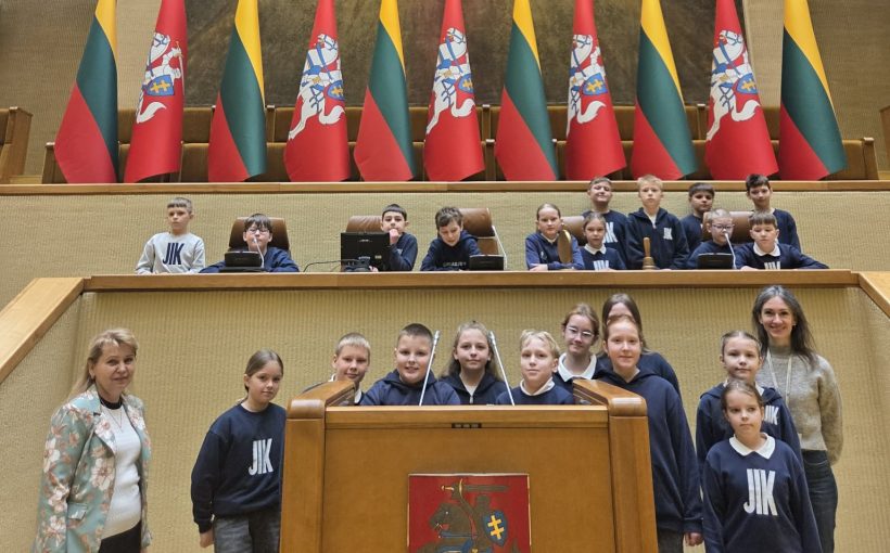 Uczniowie klasy 4 wraz z wychowawczynią Jolantą Raczewską mieli wyjątkową okazję odwiedzić Sejm Republiki Litewskiej – miejsce, w którym zapadają